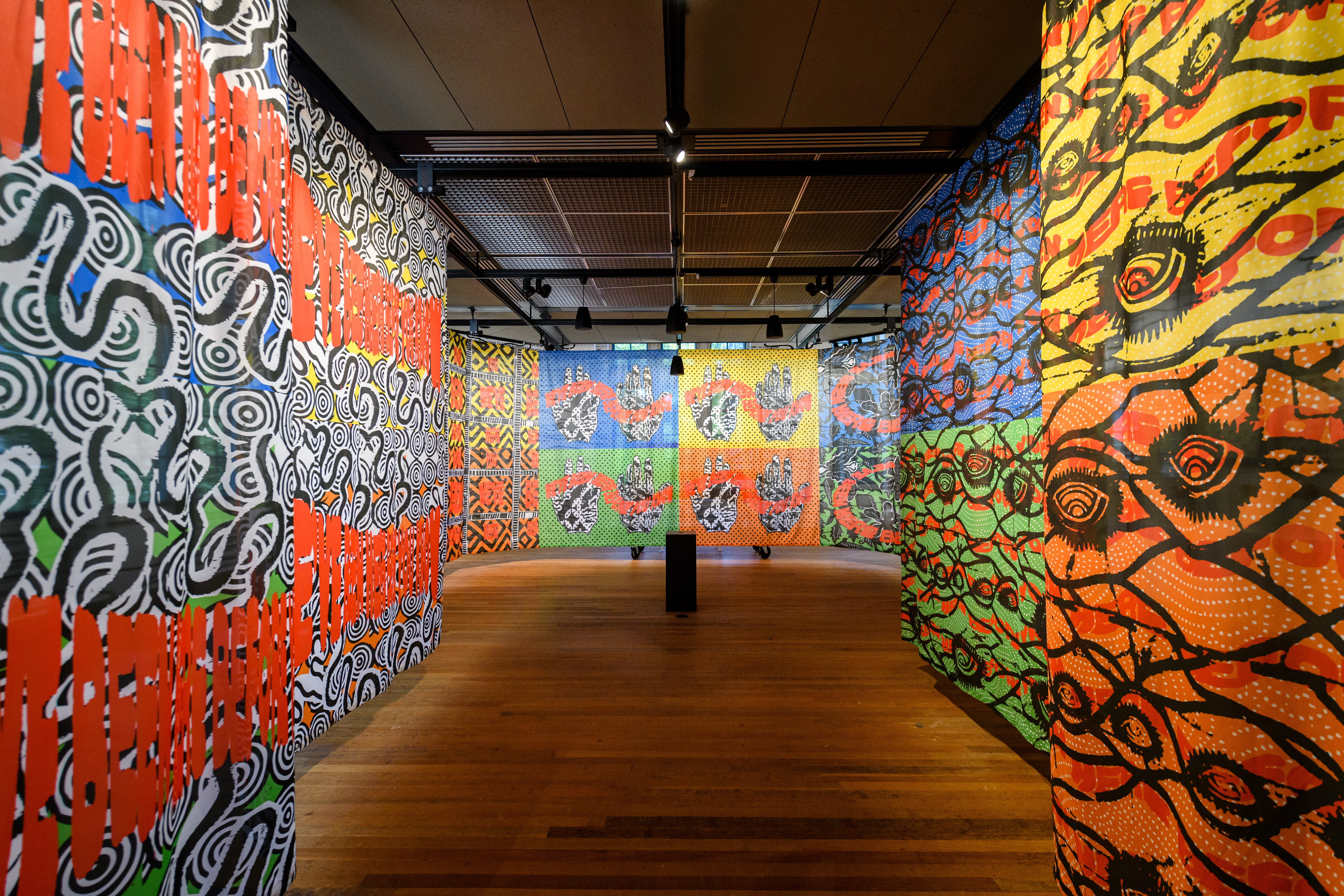 Fragment from the room with the theme language. Room designed by artists Farida Sedoc in collaboration with Prof. Soortkill, whose podcast can be heard in the exhibition. Photo: Rick Mandoeng
