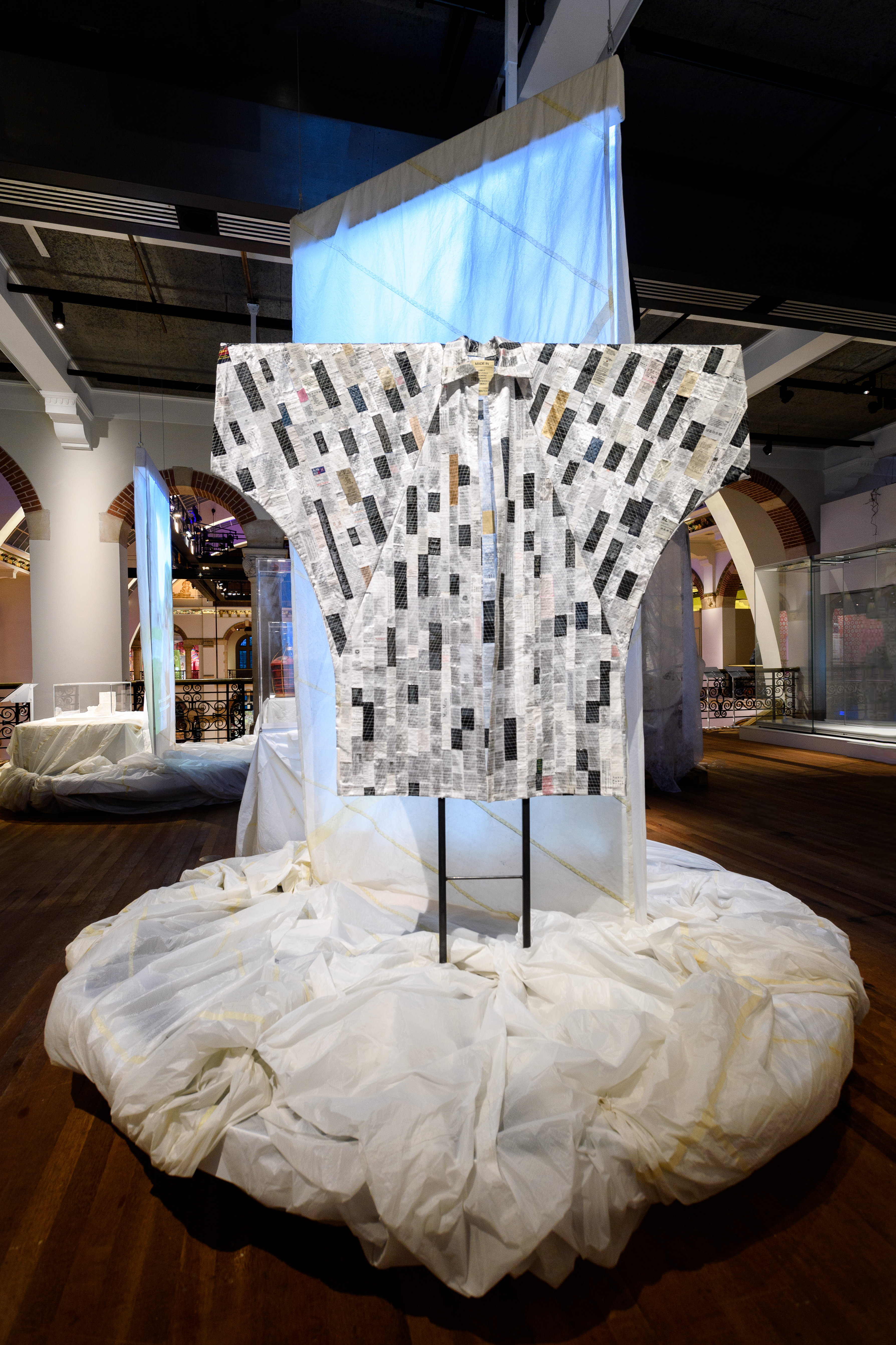 Mantle of 'Made in' labels, by Young Talent Lena Winterink. Photo Rick Mandoeng