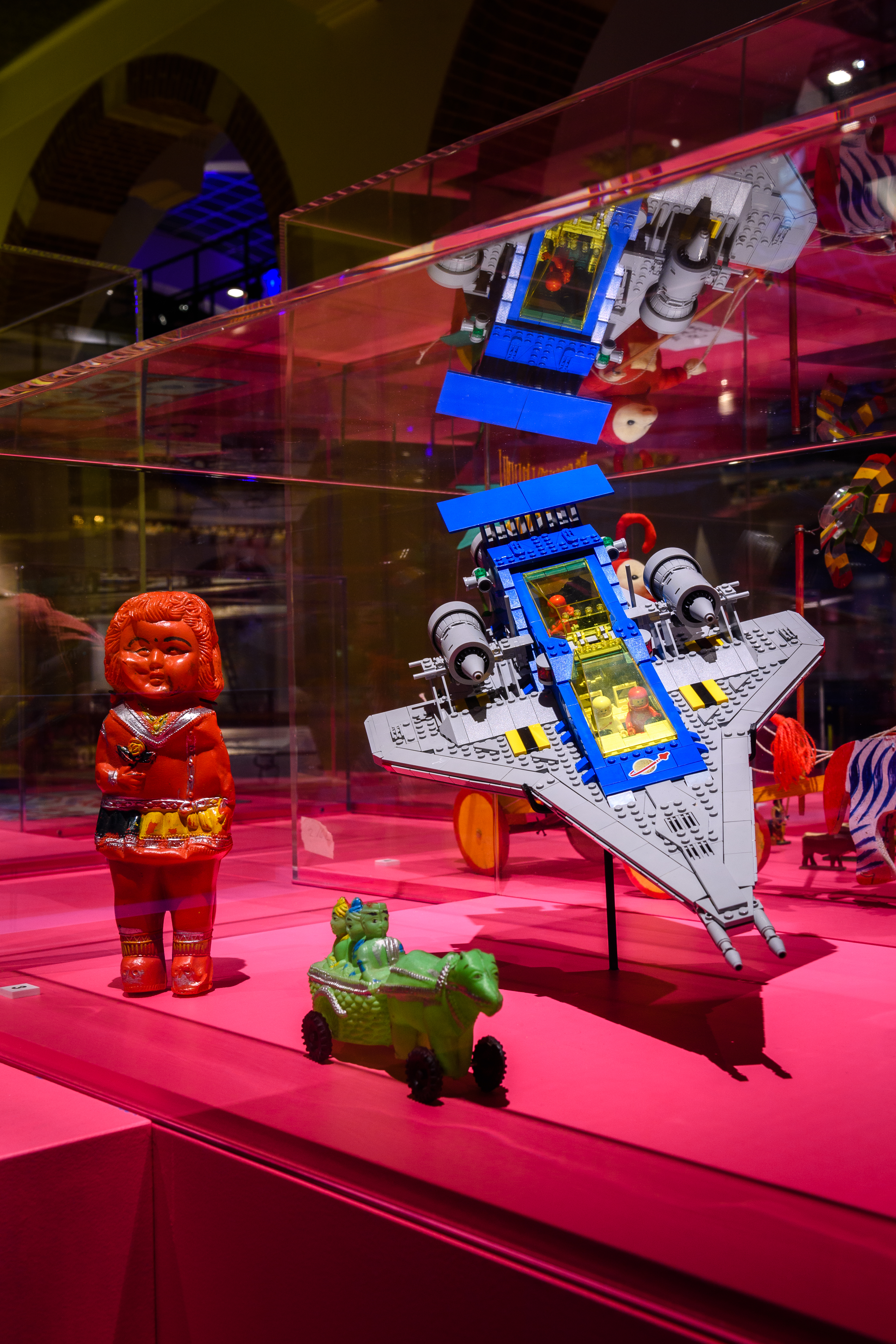 Plastic toys from all over the world. From a LEGO spaceship to a toy robot from the movie Thunder Hawks and a green chariot from the Pandavas. Photo: Rick Mandoeng.