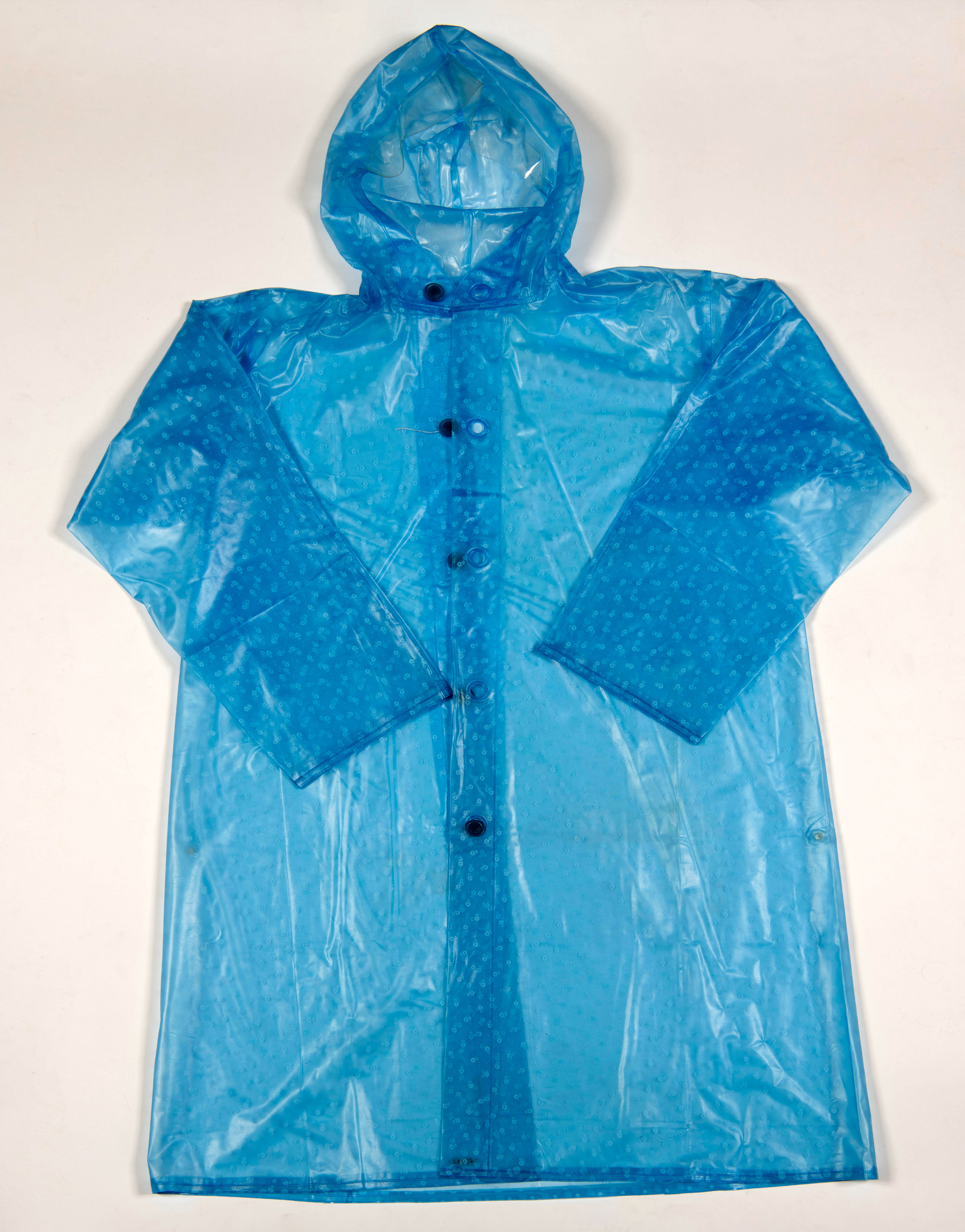 Kunststof regenjas uit China, late jaren zeventig. Gekocht tijdens verzamelreis vlak nadat de volksrepubliek zich openstelde voor internationale handel. WM-67583