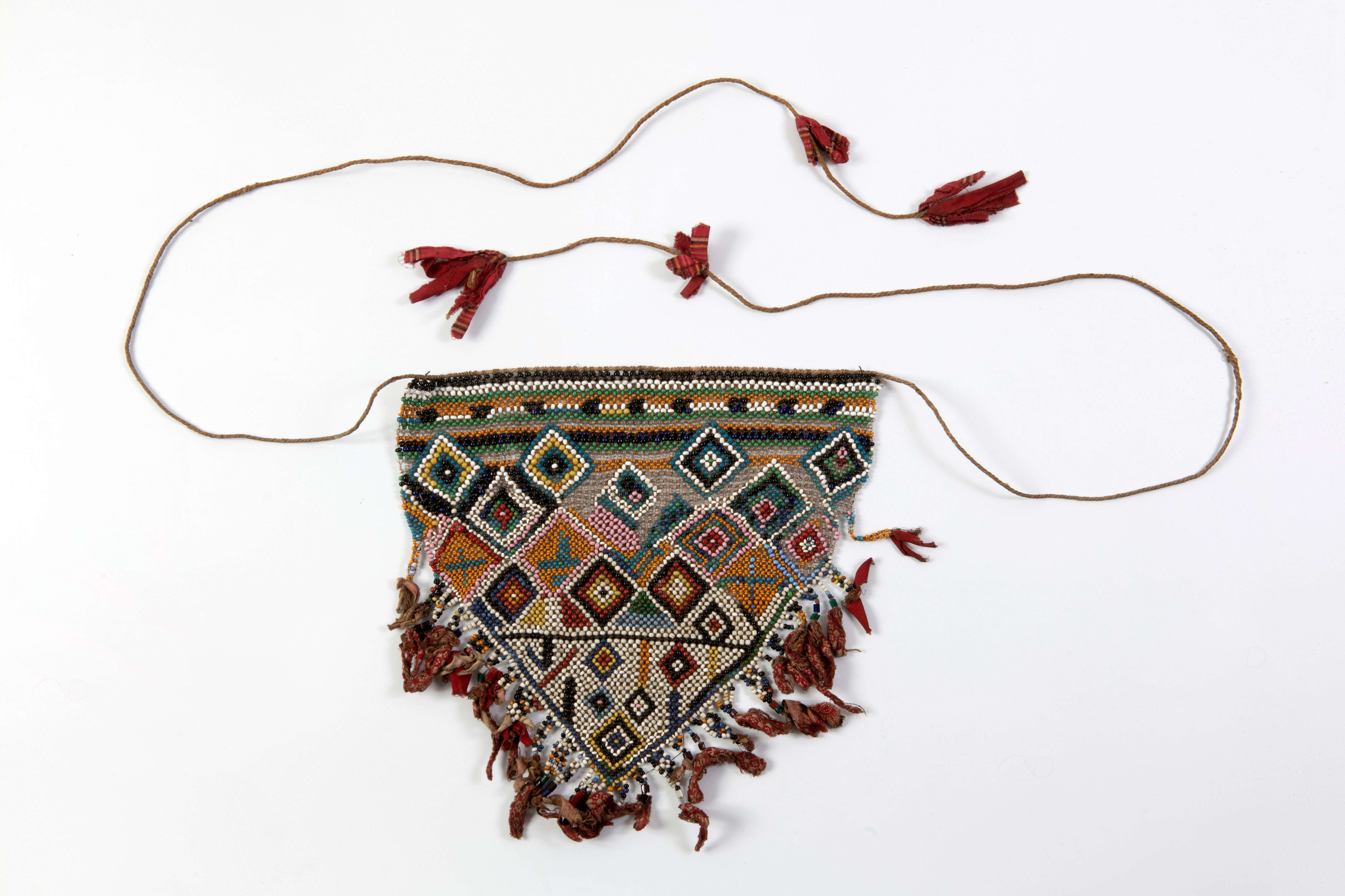 Kralenschort, Nieuw-Guinea, Geelvinkbaai; voor 1907; kralen, katoen, plantenvezels; verworven van Utrechtse Zendingsvereeniging (UZV) in 1955; WM-11254