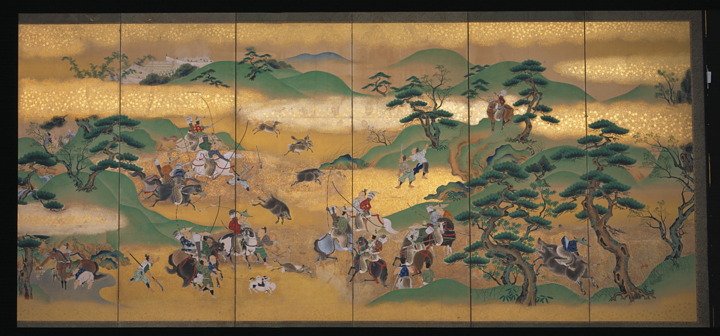 Kamerscherm met bladgoud, Kano Moritsune (1829-1866); Japan; 1855-1856; papier; bladgoud; RV-4-27