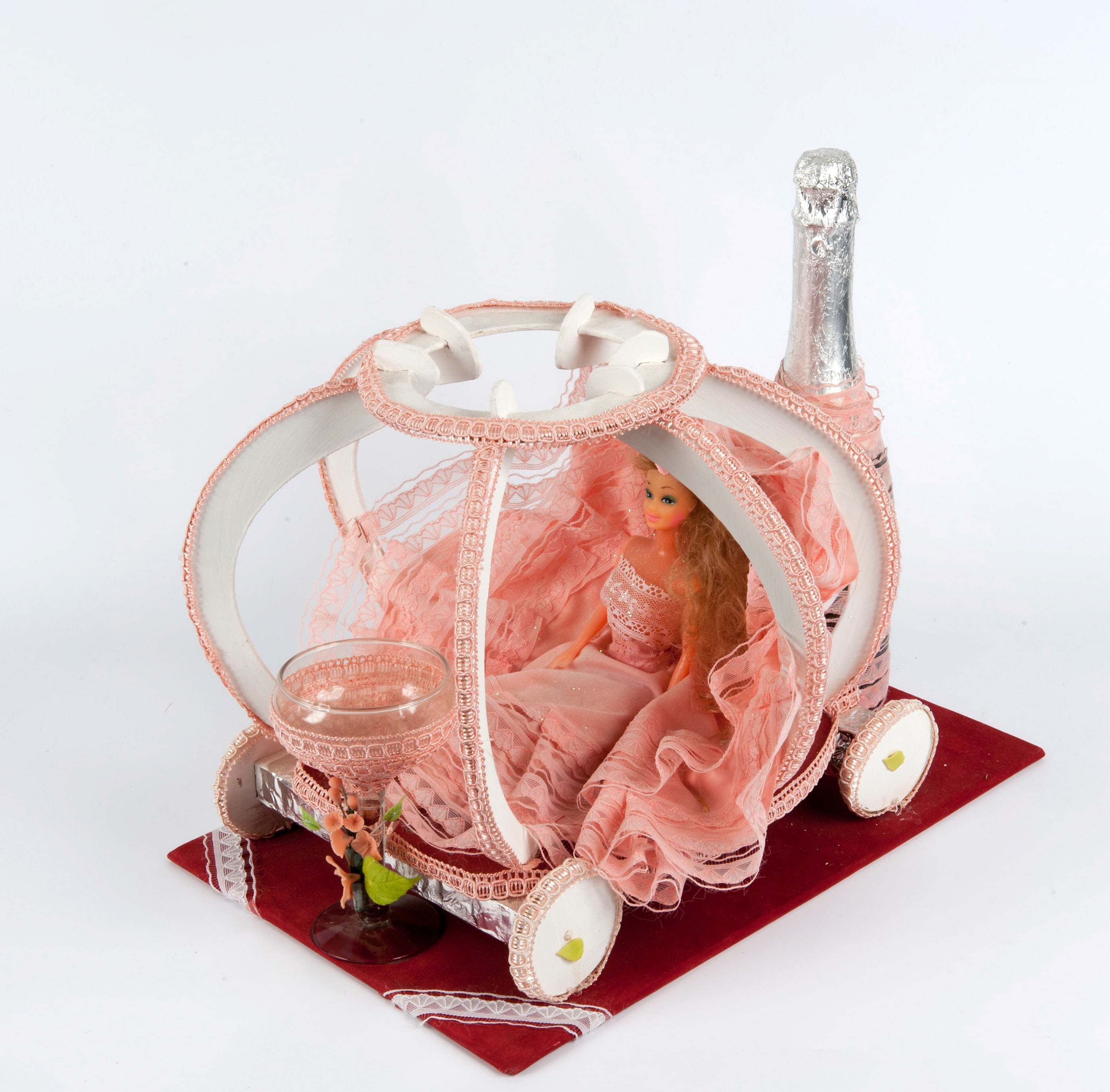 Barbiekoets Mexico; 1980-1990; hout, ijzer, kant, kunststof, papier, satijn, was; TM-5290-270