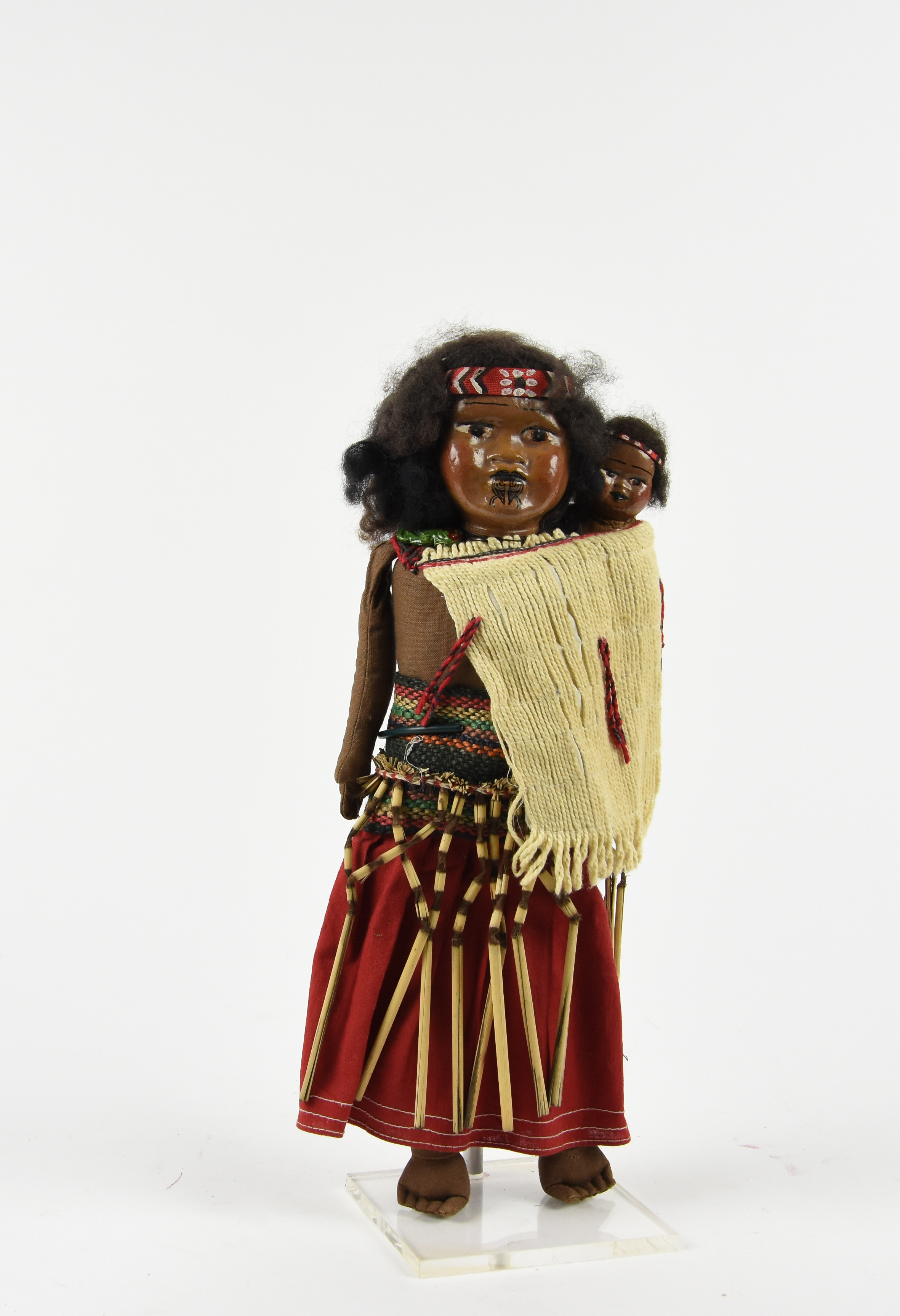 Pop met kind, in kleding van het Maori-volk; Nieuw-Zeeland; 1909-1953; Bruikleen Koninklijke Verzamelingen, Den Haag_PO-0115_02