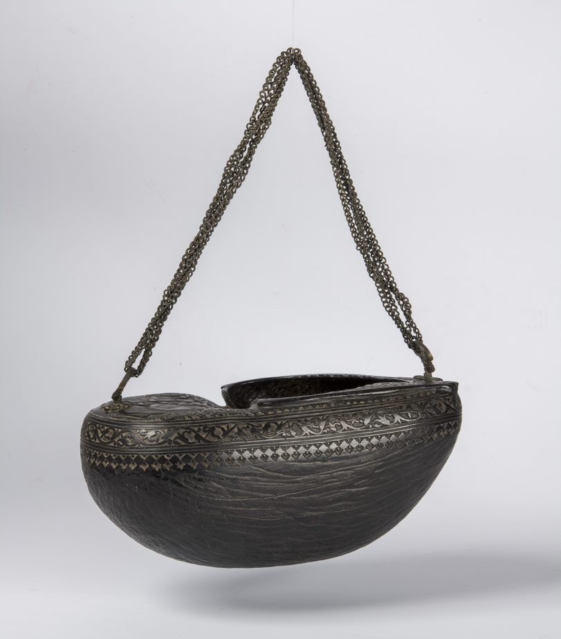 Islamitische bedelnap Iran; 1862; seychellennoot, brons; schenking dhr. en mevr. Cavadino-Tophoff, 2018; 7156-1_TM