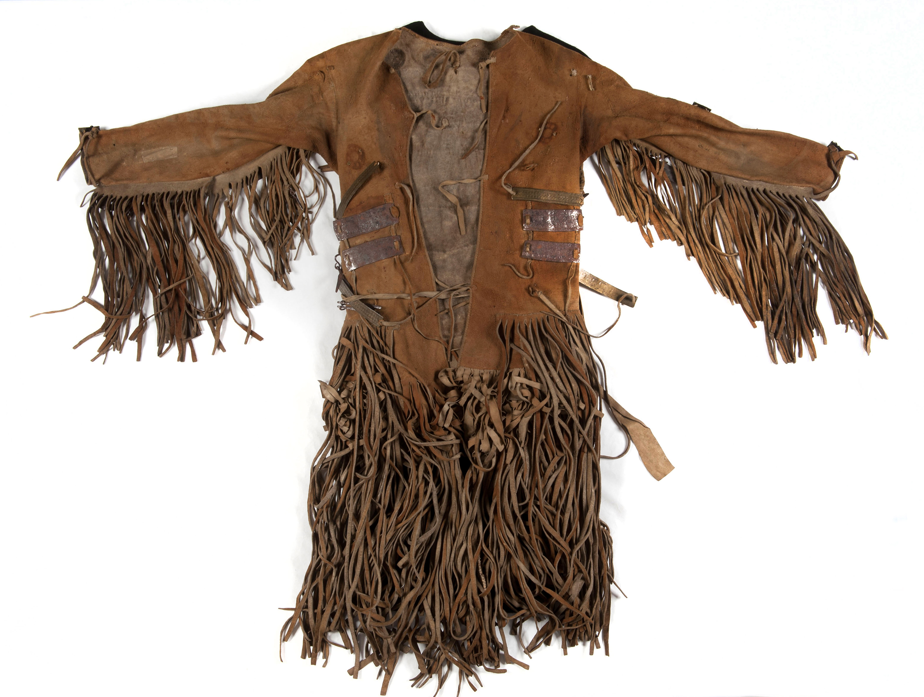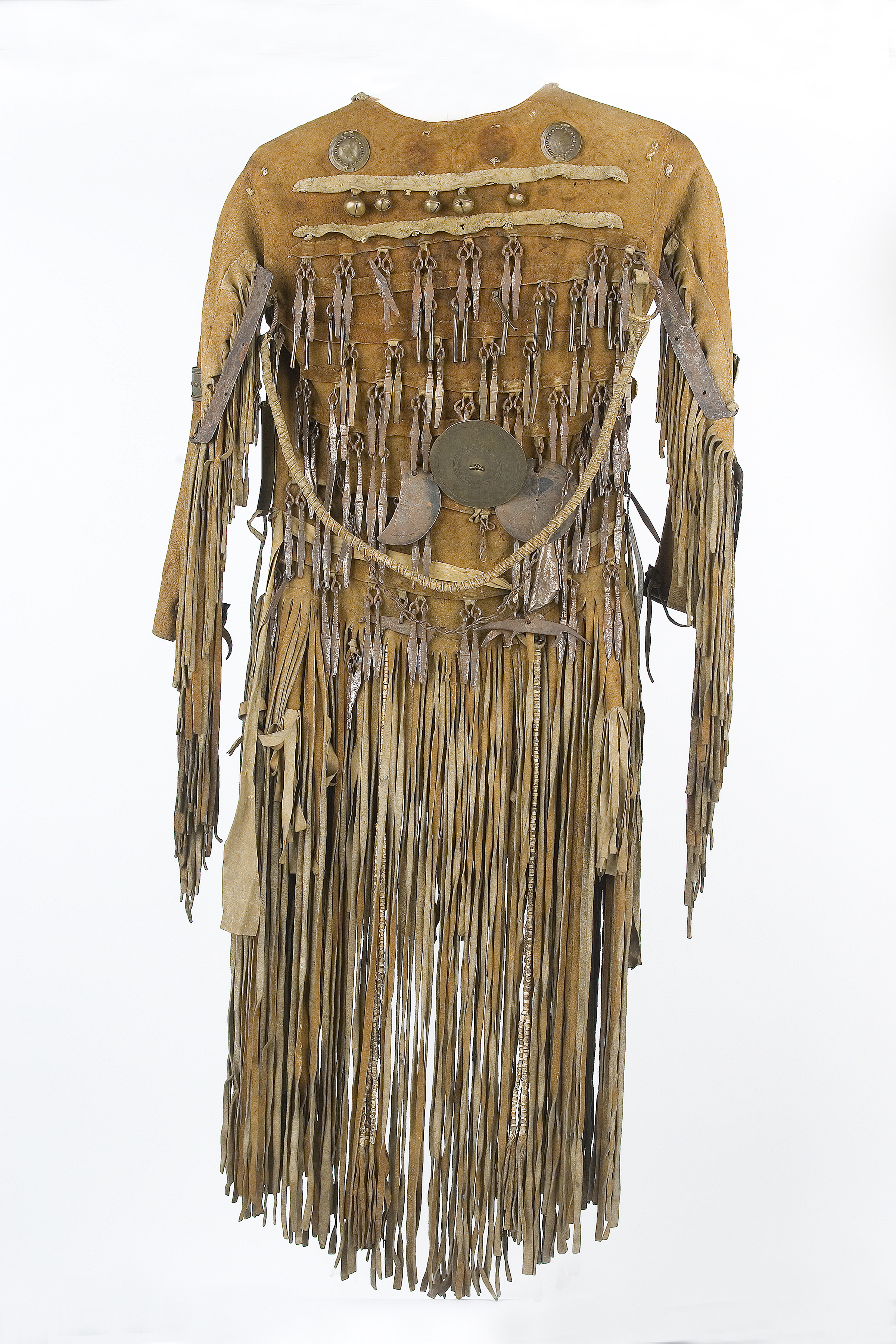 Jas van een sjamaan; leer, ijzer, peesdraad; Noordoost-Siberië, 1800-1803. Collectie Stichting Nationaal Museum van Wereldculturen