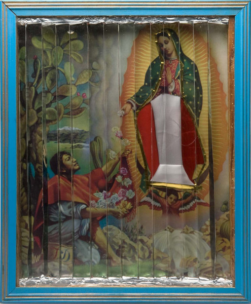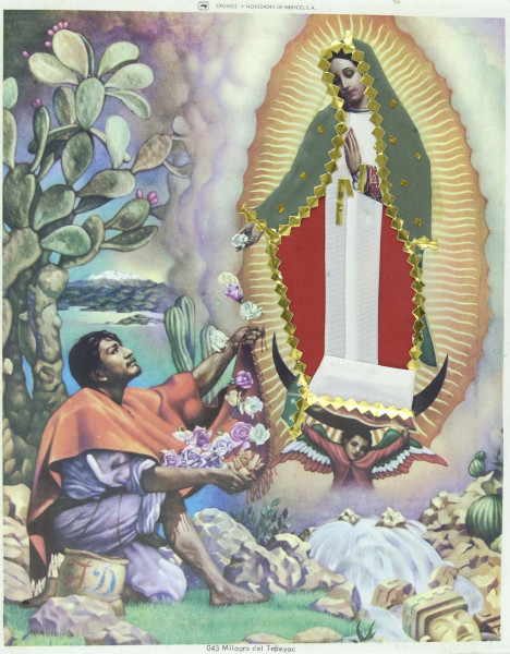 Volgens de overlevering verscheen de Maagd Maria in 1531 aan de inheemse Juan Diego op de heuvel van Tepeyac. Zij vroeg hem een tempel te laten bouwen. Als teken liet zij in de winter rozen bloeien en legde die in zijn ayate (een mantel van agavevezels). Toen hij de mantel ontvouwde, verscheen haar beeltenis daarop. Sindsdien begeleidt zij feesten, rouw en migratie en staat zij voor identiteit, troost en hoop.