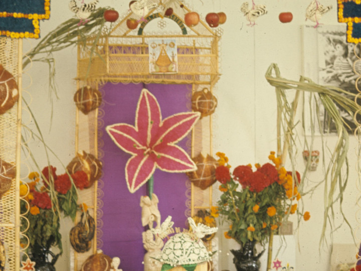 Altaar voor de viering van Día de Muertos in Wereldmuseum Leiden, 2025. Fotograaf: Edo.