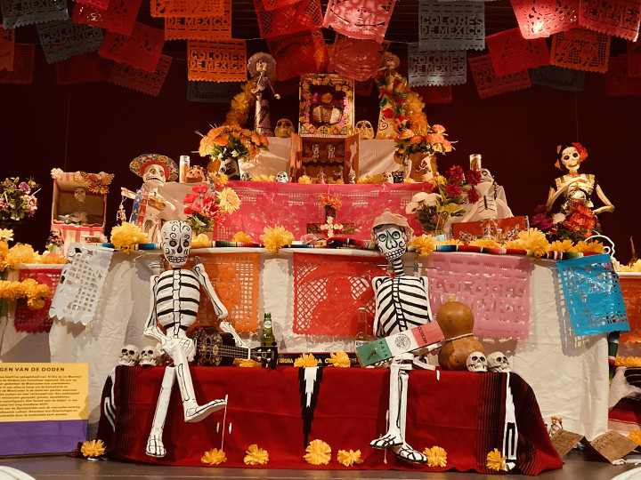 Día de Muertos is een bijzondere feestdag die precolumbiaanse tradities combineert met katholieke gebruiken. In de precolumbiaanse tijd was respect voor voorouders en rituelen van groot belang. Vandaag de dag eren veel inheemse gemeenschappen nog steeds hun voorouders. Toen de Spanjaarden in de 16e eeuw arriveerden, werden de vieringen van Allerheiligen en Allerzielen langzaam vermengd met inheemse gebruiken, wat leidde tot het huidige Día de Muertos. Ook andere culturen in koloniaal Amerika droegen hun eigen tradities bij. In 2008 erkende UNESCO deze festiviteit als Immaterieel Cultureel Erfgoed van de Mensheid. Tegenwoordig is Día de Muertos een symbool van Mexicaanse identiteit, hoewel het te maken heeft met commercialisering en moderne interpretaties in de media.